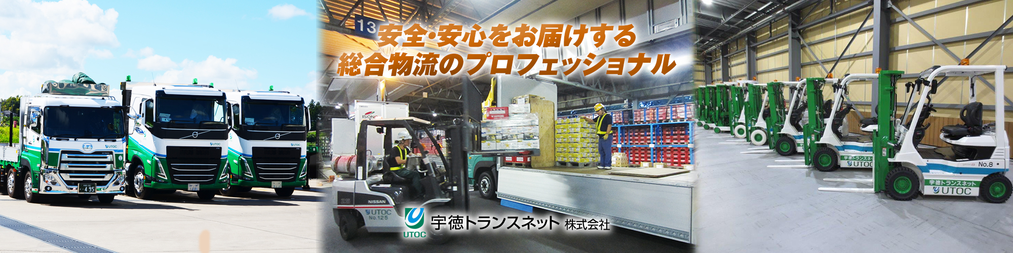 宇徳トランスネット株式会社は、千葉地区での港湾荷役・構内物流のプロフェッショナルとして、お客様と地域社会の発展に貢献します。 新着情報特殊車輌・荷役機器に画像を追加致しました。November 21, 2017 11:28 am220tクレーンを購入致しました。 続きを見る4月1日、宇徳トランスネットがスタートApril 1, 2017 12:02 am千葉宇徳は「宇徳トランスネット株式会社」に社名を変更しました。 ますますのお引き立ての程、よろしくお願いいたします。続きを見る本社オフィスを移転しましたApril 1, 2017 12:01 am本社フロアがエレベーターすぐの場所に移転しました。以前より拡張し、大会議室など設備の充実を図っています。皆様のご来社をお待ちしております。続きを見るホームページを公開しましたApril 1, 2017 12:00 am新社名でのスタートを機に、弊社ホームページを公開しました。続きを見る